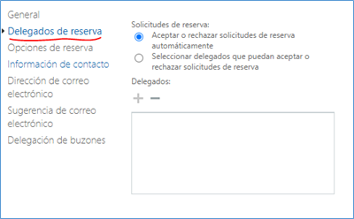 “Delegados de reserva" para ver o cambiar la forma en que el buzón de sala administra las