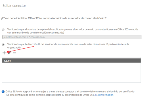 Agregar la dirección IP desde donde se enviarán los mensajes usando un conector: